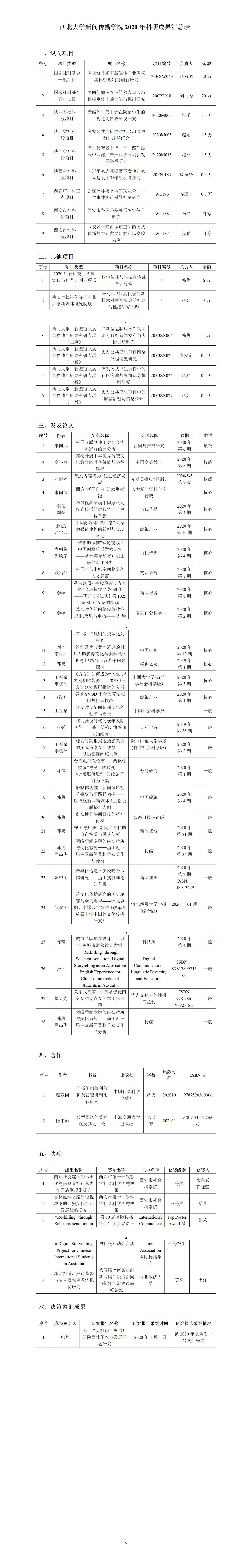 bwin必赢2020年科研成果汇总表